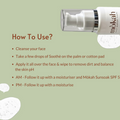 - Apply evenly over the face to eliminate impurities and restore skin pH