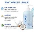 - Infused with coconut, hyaluronic acid, ceramides, aloe, and water burst beads