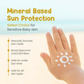 - Gentle Mineral Filters + Comprehensive SPF 50: Our sunscreen is crafted with gentle mineral filters, offering broad-spectrum defense with SPF 50. This baby sunscreen delivers the utmost protection against harmful UV rays and intense sunlight, ensuring your baby's skin remains safeguarded and healthy. Perfect for tender skin, it serves as an ideal sunscreen for dry, normal, and sensitive skin, providing both defense and moisture.