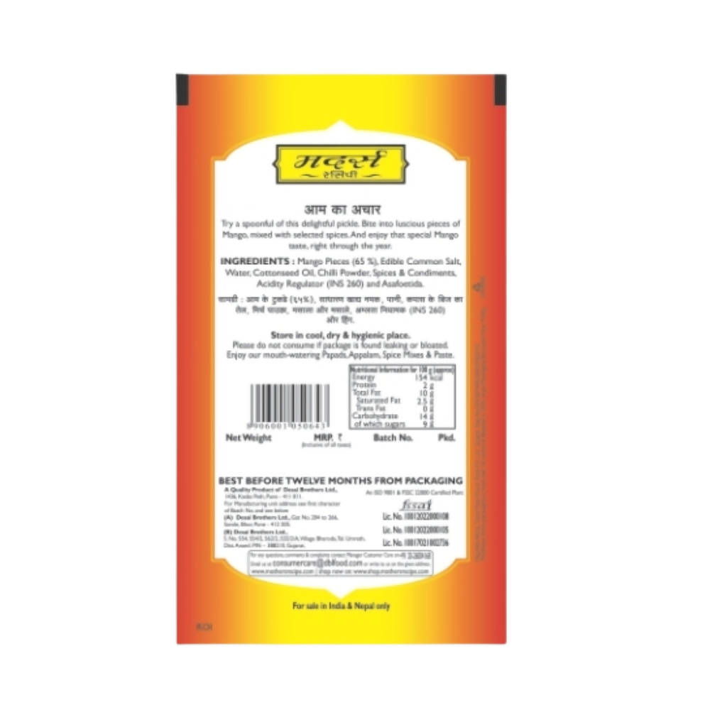 Ingredients: Mango Pieces, Brine, Spices and Condiments, Edible Common Salt, Edible Vegetable OilShelf Life: 12 months