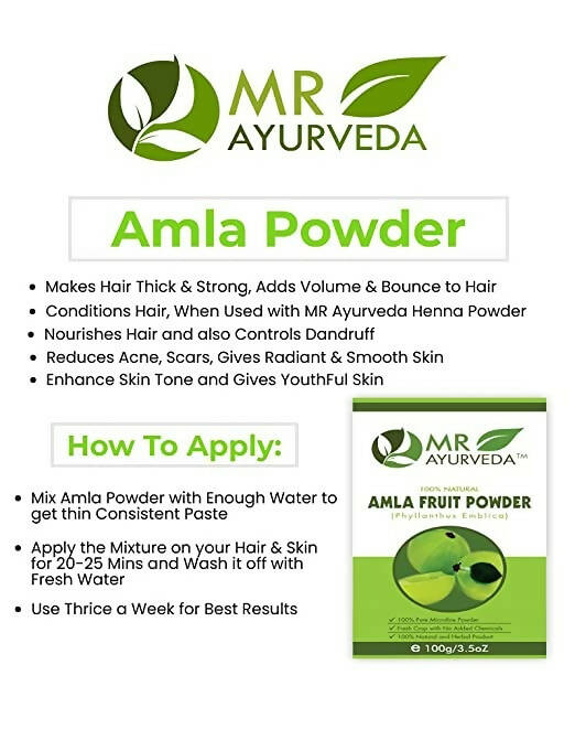 - Outstanding Hair Conditioner: MR Ayurveda Amla Powder serves as a superb hair conditioner and provides an effective solution for dandruff