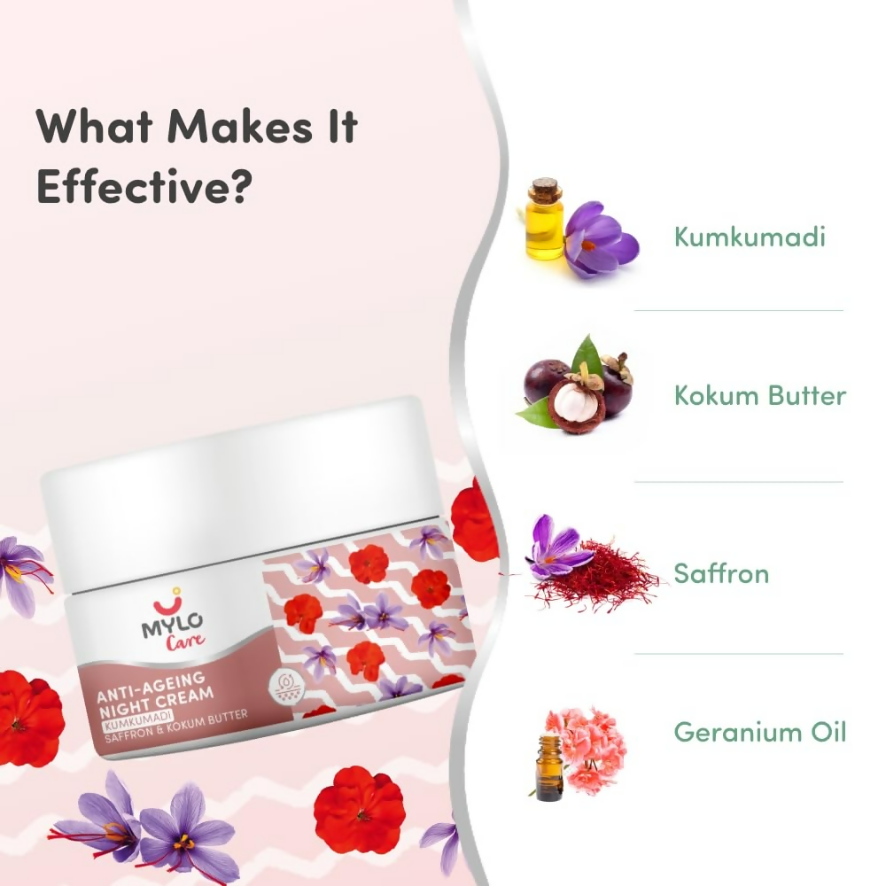 - Natural Formulation: Mylo Veda’s Kumkumadi Combo is enriched with pure and ayurvedic elements such as kumkumadi for enhancing your skin's glow, kokum butter for skin firmness, goat milk for added softness, and sandalwood for hydration.