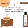 - Rosehip oil is purely derived, cold-pressed from the initial extraction of top-grade rosehip seeds without the use of heat or refining agents. It is preserved in its natural, unrefined form to ensure maximum nutrient preservation.