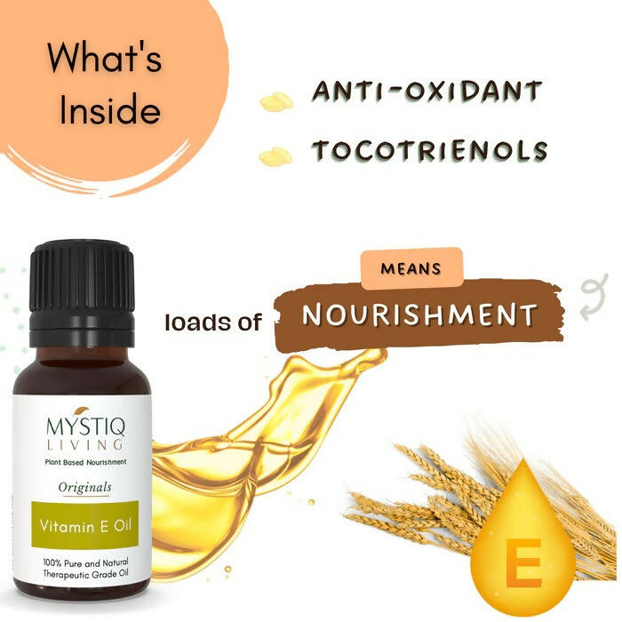 - Mystiq Living's Vitamin E oil is derived from fresh, premium wheat germs using a method that avoids heat and refining agents, ensuring it's 100% pure. It is packaged under the most sanitary conditions to preserve maximum nutrients.