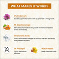 Discover the wonders of Redensyl, an innovative hair complex, as it revives inactive hair follicles and promotes hair growth. Observe the metamorphosis as your hair appears noticeably denser, more voluminous, and regains its inherent vitality.