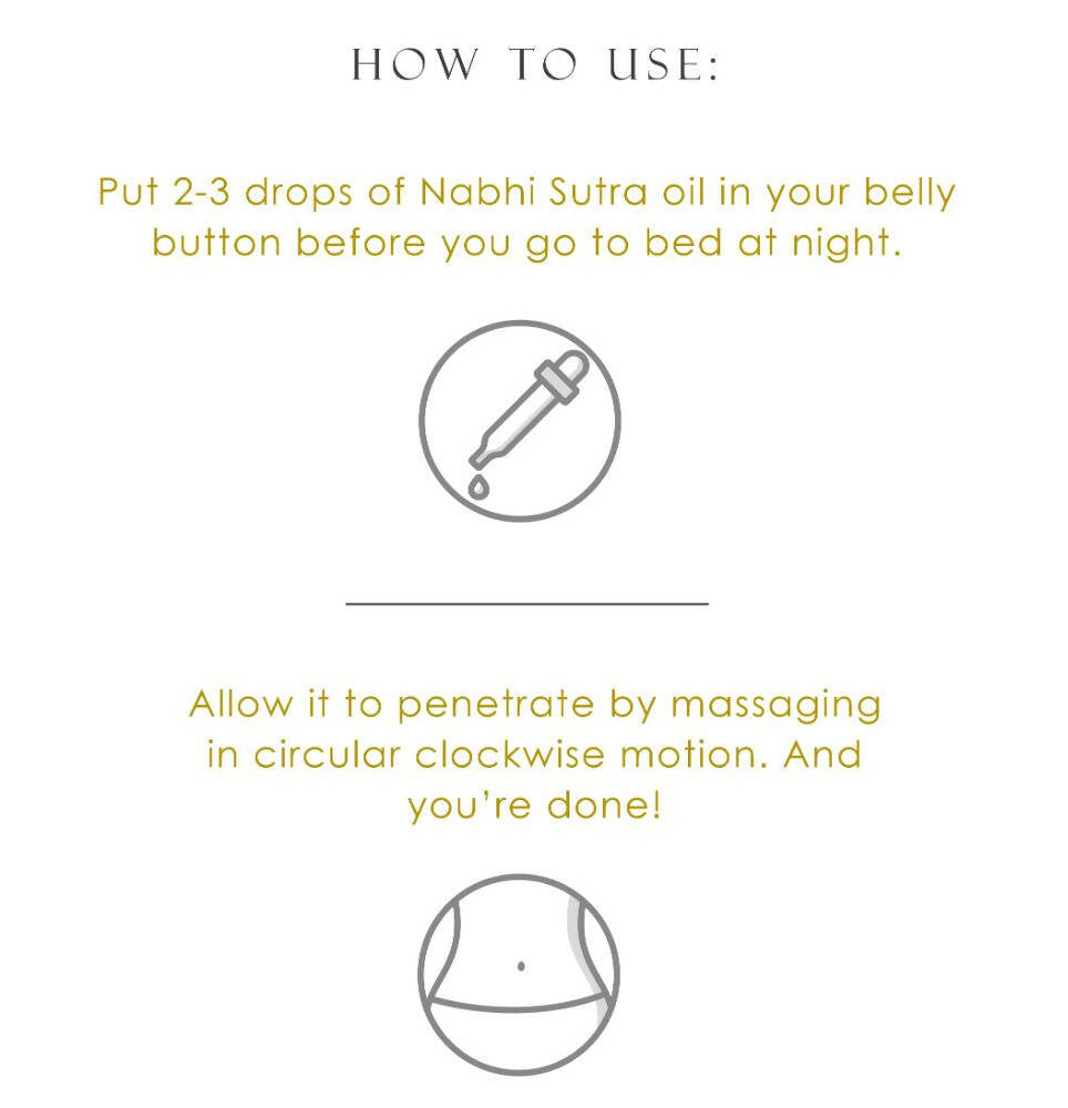 - Put 2-3 drops of required Nabhi Sutra oil in your belly button before you go to bed in the night.
