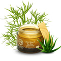 An exceptional leave-on cream featuring the healing and revitalizing properties of natural Aloe Vera and Tea Tree oil. Aloe Vera supports the skin in maintaining moisture, leaving it refreshed. The formulation is enriched with multiple active components that possess anti-inflammatory, antibacterial, and antifungal attributes while also being cooling and restorative.