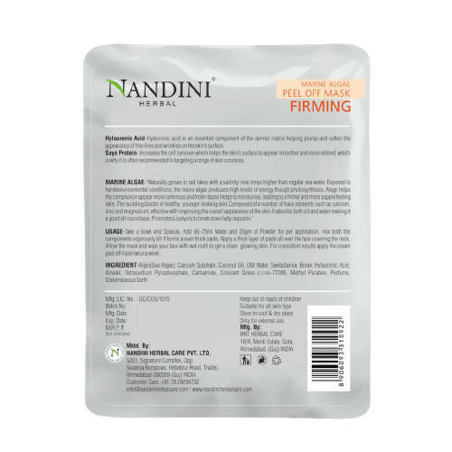 - The Nandini Herbal Marine Algae Peel Off Mask Firming is enriched with Hyaluronic Acid and Soya Protein. Hyaluronic acid plays a crucial role in the dermal matrix, aiding in plumping and smoothing the look of fine lines and wrinkles on the skin's surface.