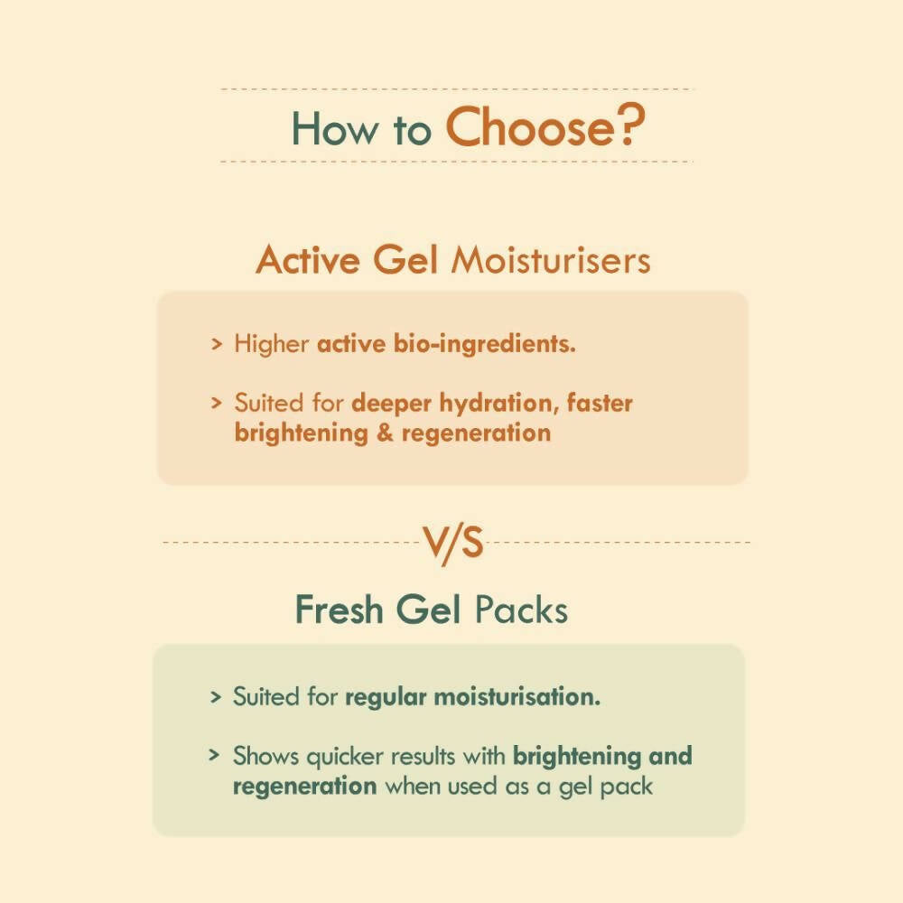 - Completely natural and freshly prepared active face gel infused with potent bio compounds from aloe vera, orange juice, and kiwi juice. It enhances skin clarity and collagen production. Free from glycerin and carbomer, this gel, crafted with farm-fresh aloe, orange, and kiwi juices, is a secret to radiant skin for every skin type.