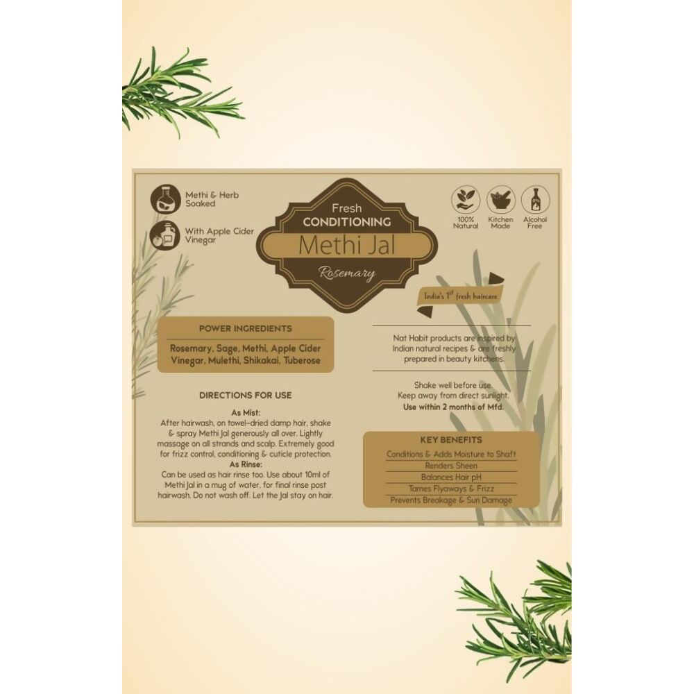 - Post hair washing, on towel-dried moist hair, shake well and spritz Methi Jal liberally all over. Gently massage into all strands and the scalp. Excellent for taming frizz, conditioning, and cuticle safeguarding. With every application, hair will soften, untangle, and become increasingly manageable. You'll adore the sensation of running your fingers through the soft locks repeatedly.