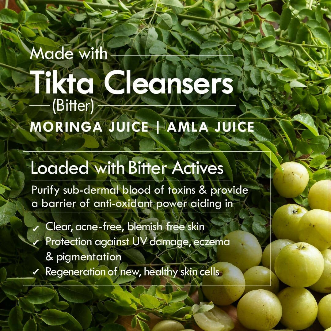 - Discover the Revitalizing Bitter Cleanse with Fresh Daily Tikta. Enriched with the invigorating bitter properties of moringa leaves, illuminating fresh amla juice, orange juice, and more, it offers thorough purification and deep tissue cleansing that bestows a lasting, healthy, and supple glow to the skin. Crafted with a base of fresh milk cream to prevent dryness during cleansing, this facewash is 100% naturally derived, ensuring a chemical-free, sulfate-free, and paraben-free cleanse.