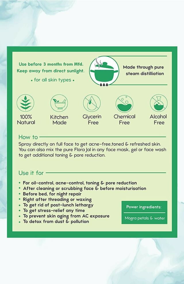 - Expertly steam distilled from Mogra blossoms to enhance its abilities in revitalizing and repairing impaired skin, fine lines, and pores.