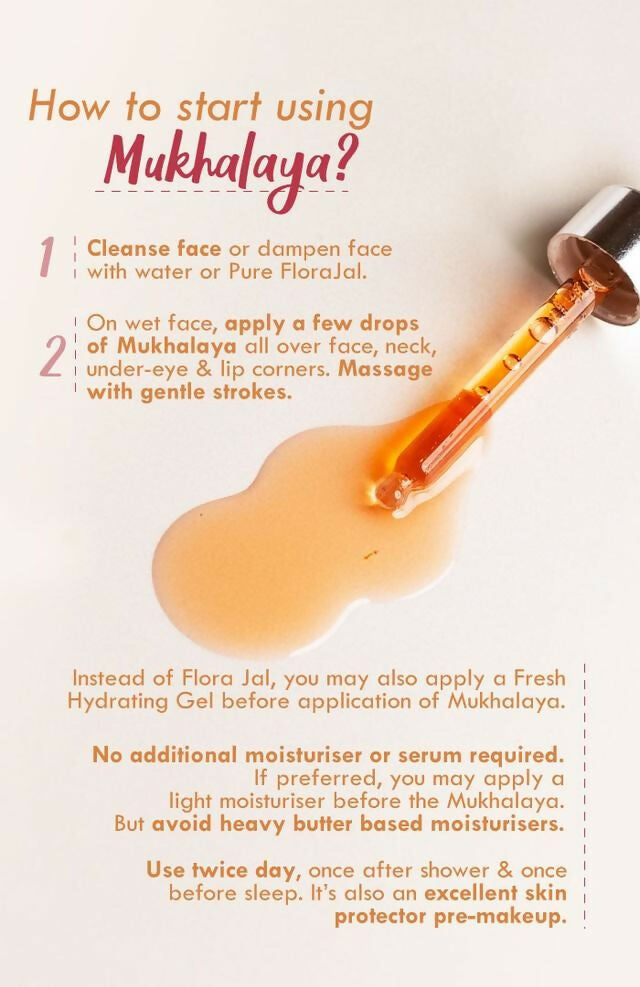 - STEP 2: On a moist face, distribute a few drops of Mukhalaya evenly across the face and neck.