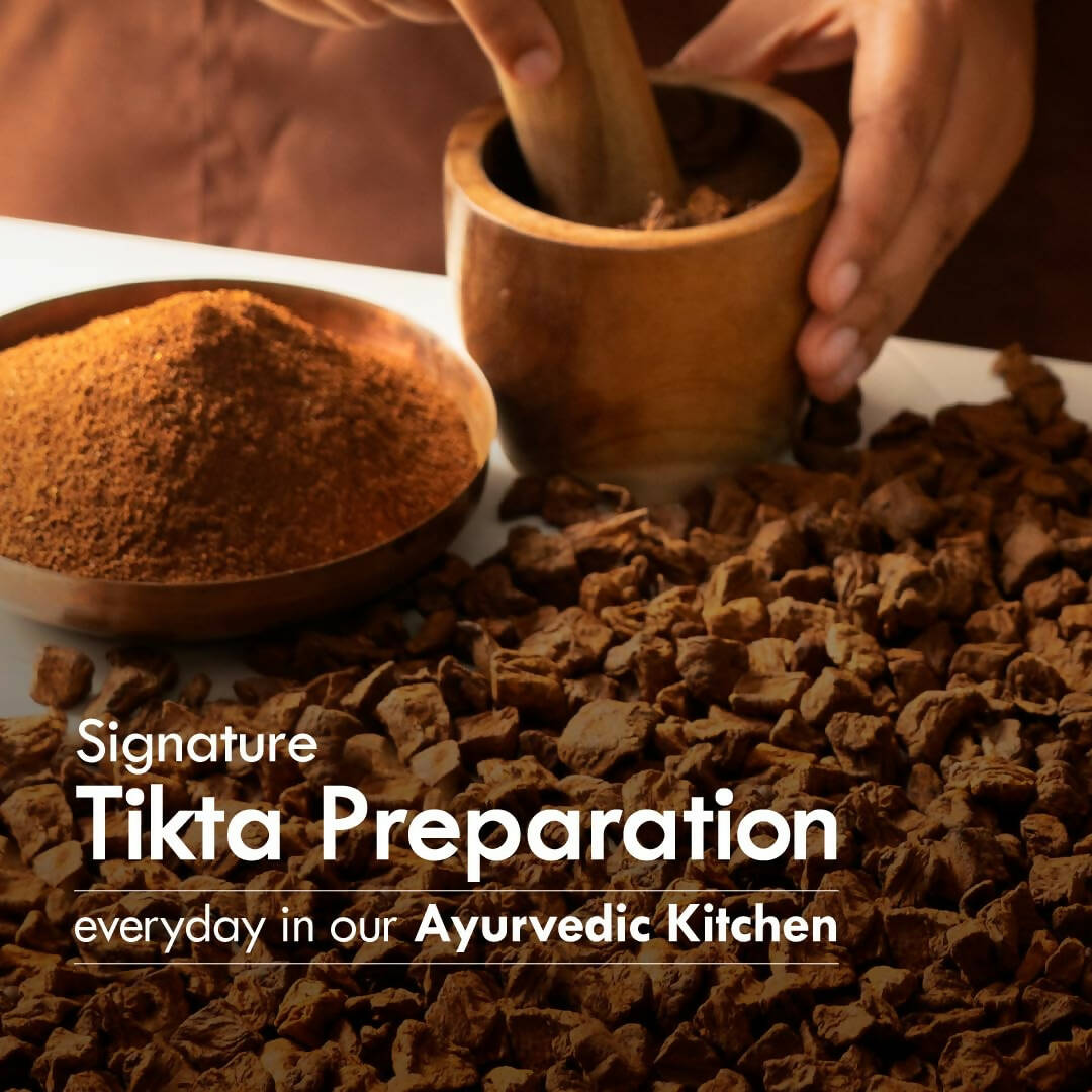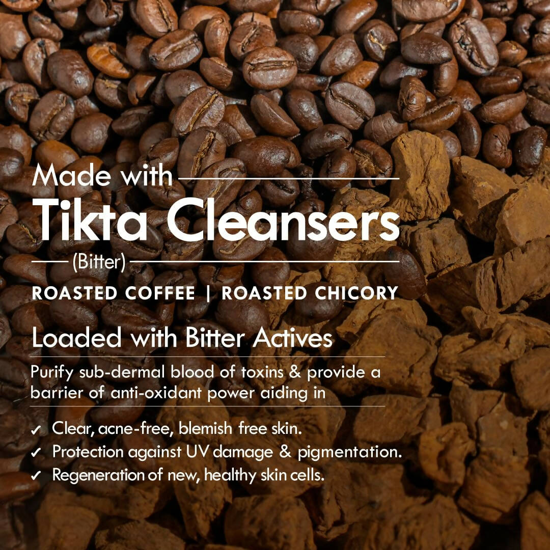 - Experience Restorative Bitter Cleansing with Fresh Daily Tikta. It is enriched with the bitter properties of roasted chicory, roasted coffee, detoxifying activated charcoal, and more, offering a purifying deep cleanse, deep tissue, and blood purification for a healthy, enduring, supple radiance, and clarity to your skin. Crafted from farm-fresh aloe vera pulp, it prevents skin from drying out during cleansing. This face wash is entirely naturally derived, ensuring a chemical-free, sulfate-free, and paraben-free cleansing experience.