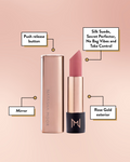 Glamourous on the outside with even more to love on the inside- Just like you! This silky smooth and pigmented lipstick is ergonomically designed with a push release button and mirror