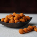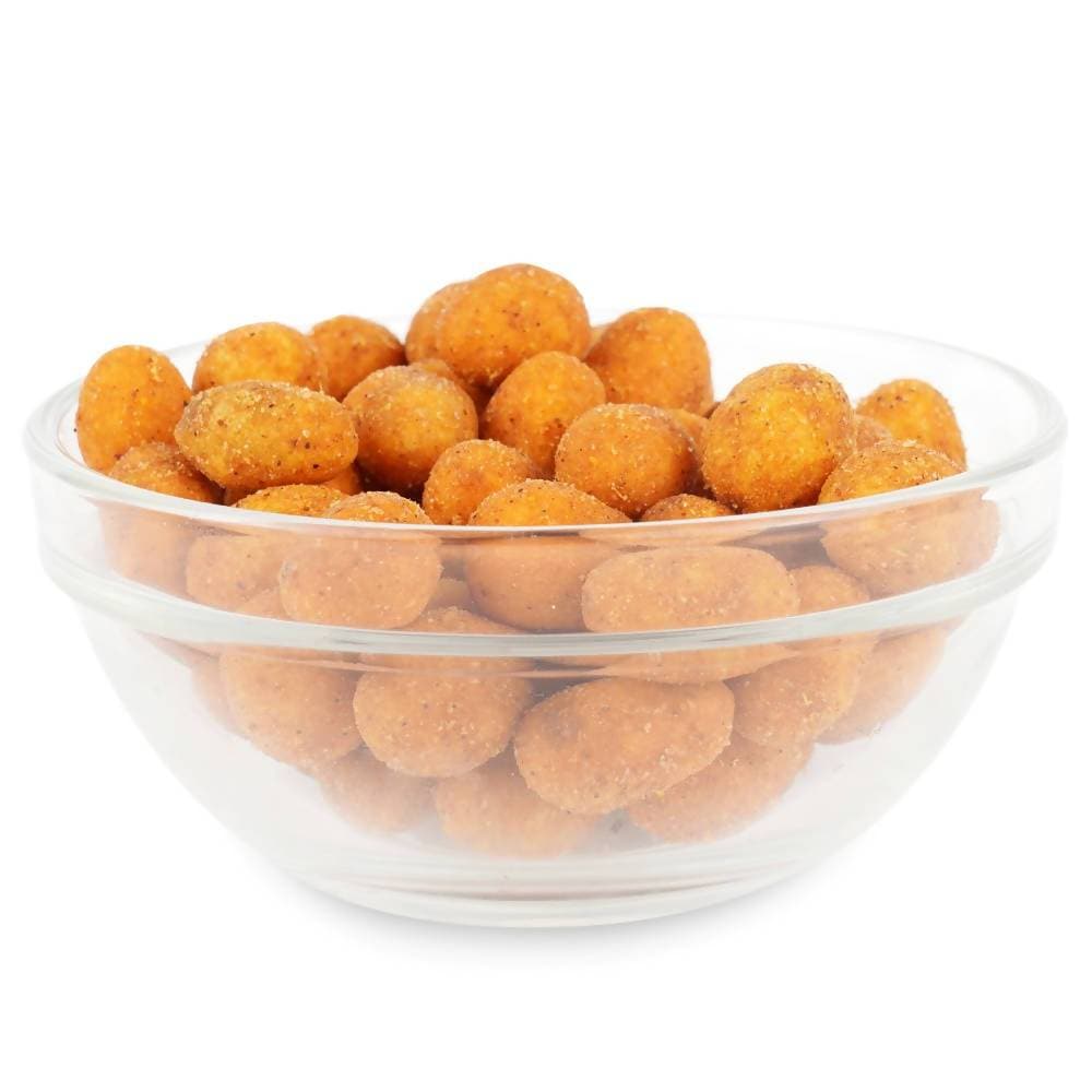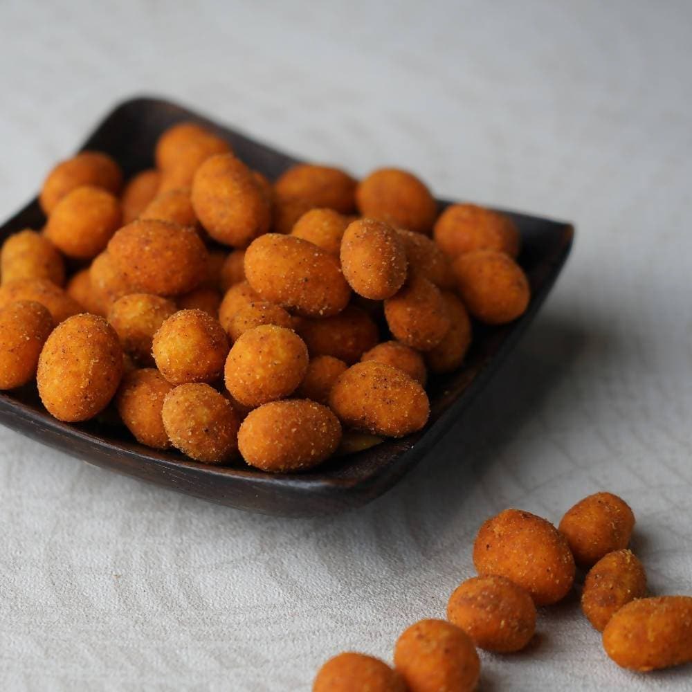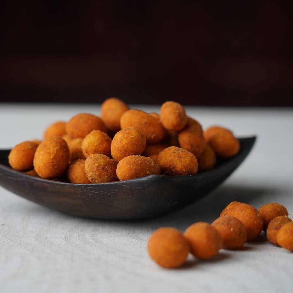 "This zesty snack, Nutcracker, is enrobed in layers of gram flour and spices, then expertly deep-fried to achieve a delectably crisp texture. It pairs wonderfully with an ice-cold drink."