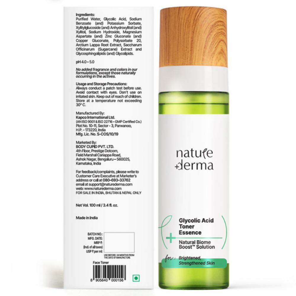 Nature Derma Glycolic Acid Toner Essence is a rejuvenating toner designed to enhance your skin's luminosity and texture. Infused with glycolic acid, this toner effectively removes dead skin cells, unveiling a more radiant and luminous complexion. Enriched with sugarcane extract, it acts as a humectant, ensuring prolonged hydration for your skin. The AHA (glycolic acid) component also aids in diminishing dark spots, acne scars, and uneven pigmentation.