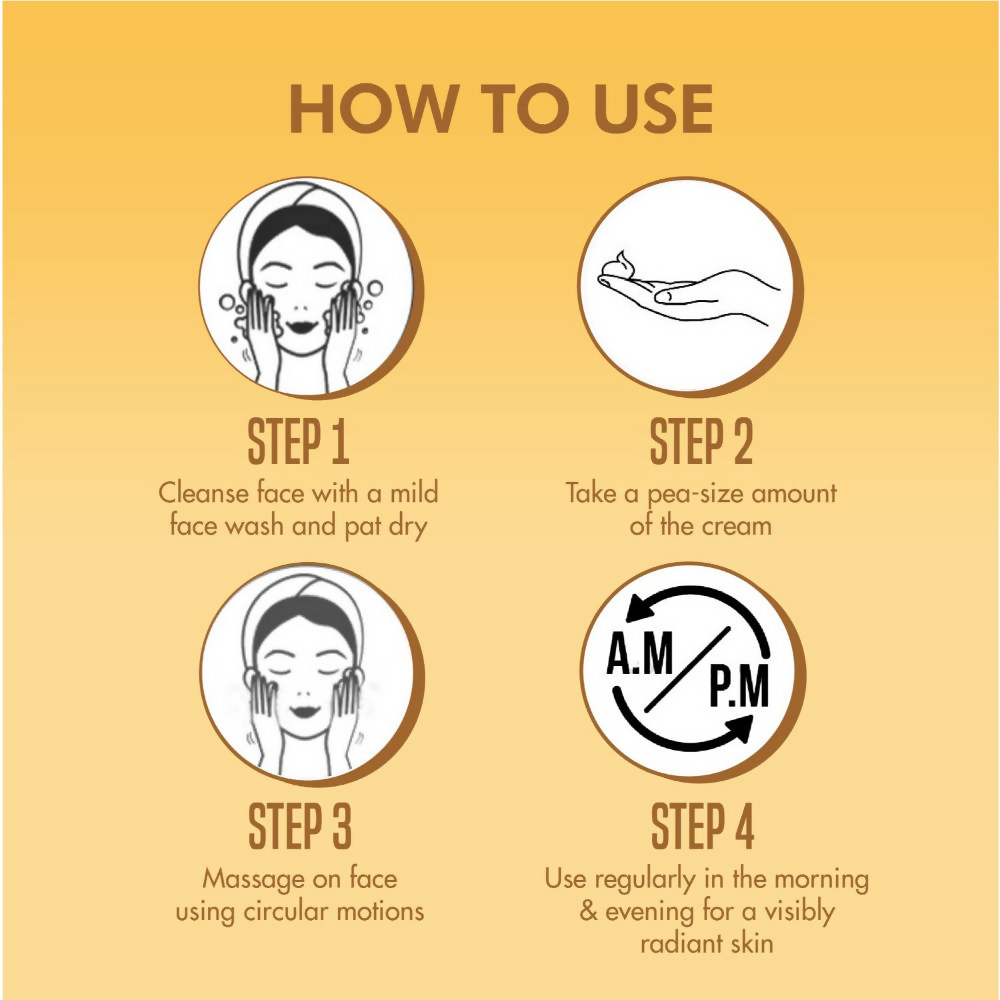 - Apply a small pea-sized amount of the cream and gently massage it onto the face using circular motions.