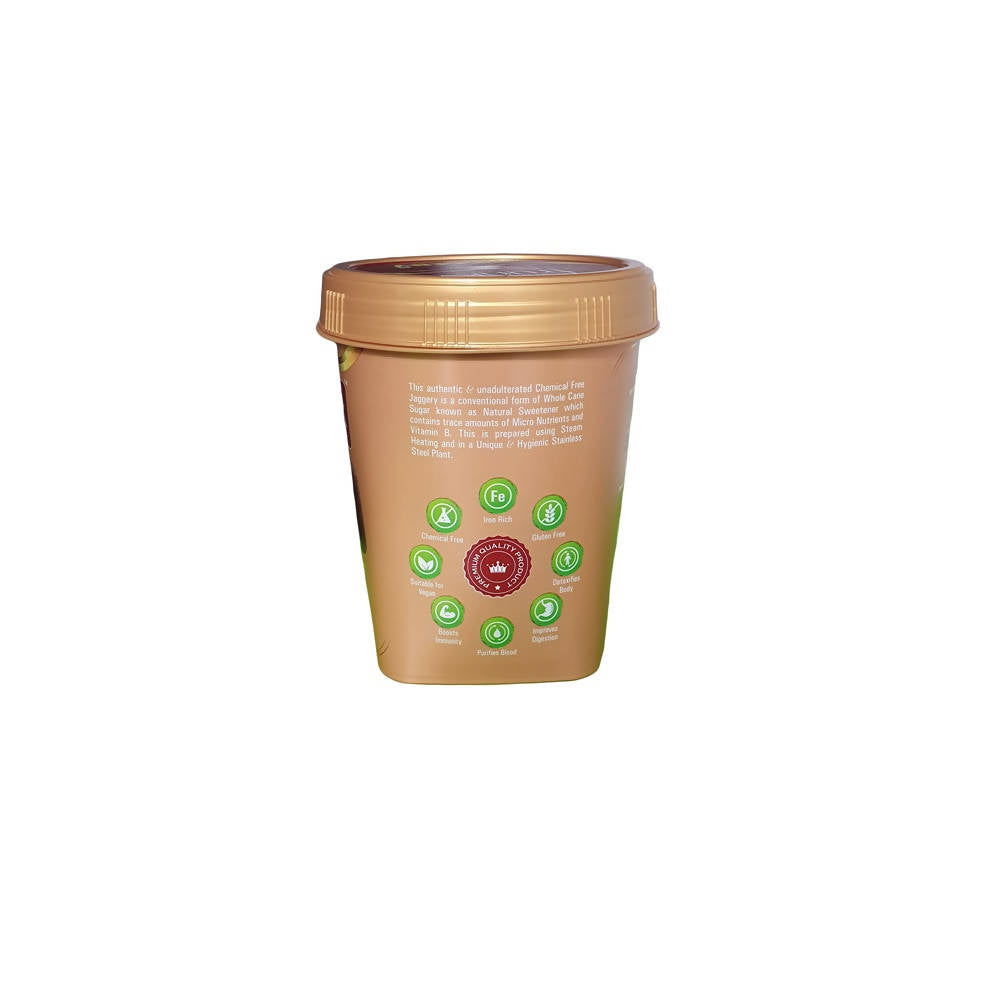 This genuine and pure Chemical-Free Jaggery is a traditional form of Whole Cane Sugar recognized as a Natural Sweetener, containing small amounts of Micro Nutrients and Vitamin B. It is crafted using Steam Heating within an exceptional & Hygienic Stainless Steel Facility.Legal Disclaimer: The product is assured to be 100% authentic. Product images serve illustrative purposes only. Images/packaging/labels may change periodically due to the manufacturer's batch and location adjustments. The product description is for informational purposes only and may list additional ingredients.