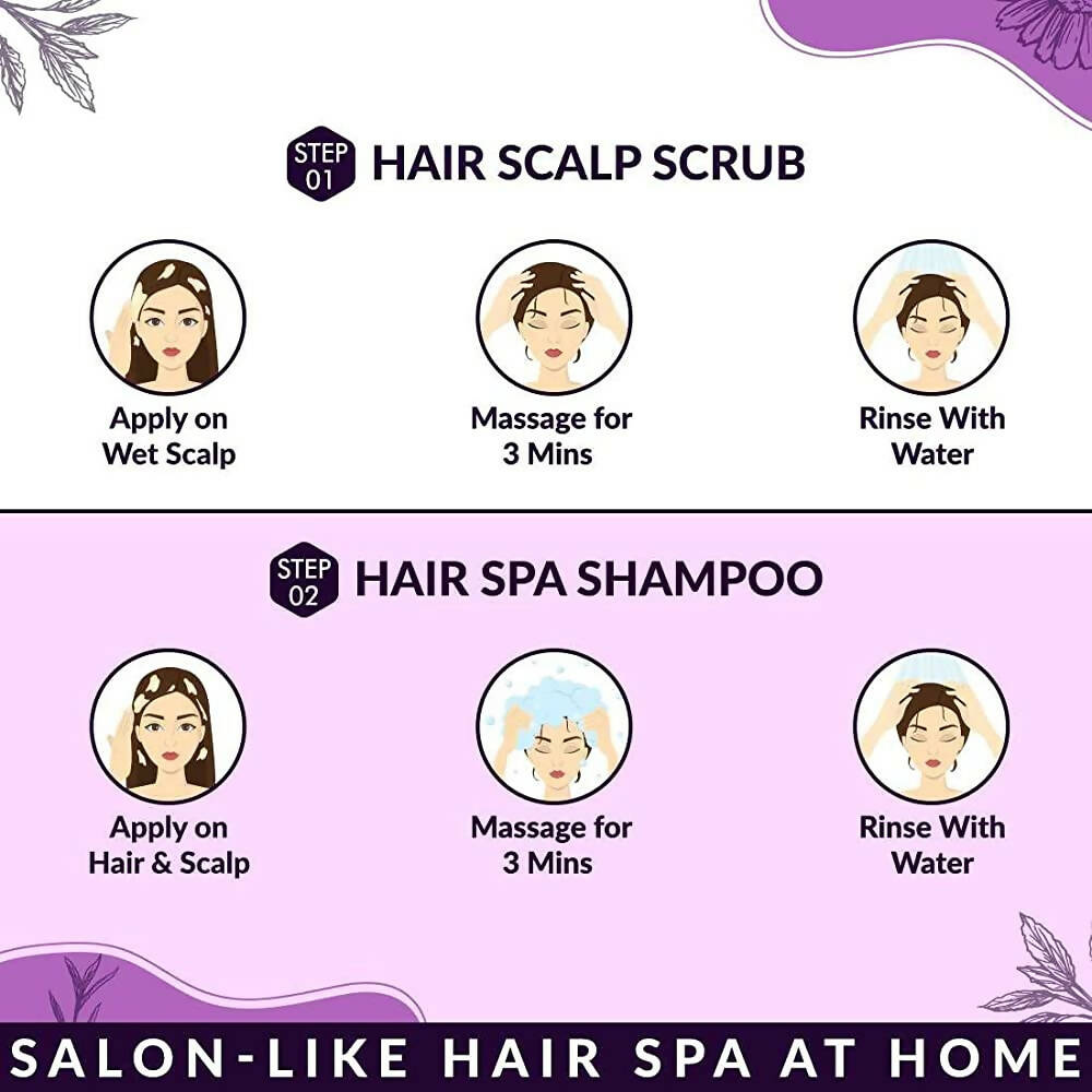 - Each package contains a sachet of hair scalp scrub, hair spa shampoo, hair spa conditioner, & hair serum