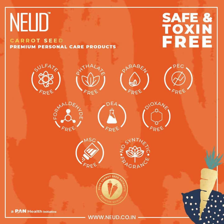 Consistent application of NEUD Carrot Seed Hair Conditioner enhances blood microcirculation to the scalp, fostering the development of robust hair. It also encourages the generation of new cells. Carrot seeds are a natural treasure trove of essential vitamin A, α, β, and γ carotenes, alongside carotenoids, all crucial for lustrous, healthy hair.Ingredients: