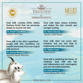 - Small fat molecules in goat milk enable AHAs to penetrate the skin’s outer layer deeply to retain moisture, leaving it incredibly soft.