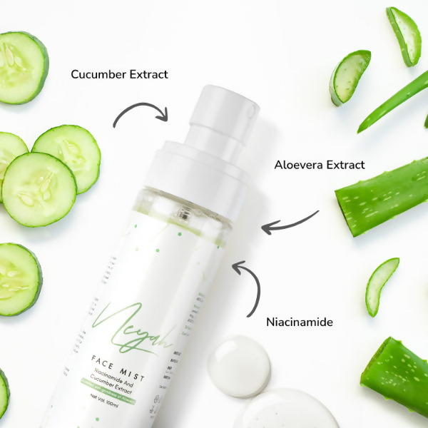 - Experience the nourishing blend of Niacinamide, Cucumber, and Aloe Vera extracts in this facial mist, ideal for all skin types, particularly those prone to acne. Blemishes can be stubborn, often caused by clogged pores. This versatile product hydrates, fortifies the skin barrier, minimizes the look of pores, and helps prevent acne. Cucumber contributes to refreshing, pore-tightening, and purifying your skin. Crafted to maintain an optimal pH balance, it supports skin in its most natural state, addressing issues like clogged and enlarged pores, excess oil, and dryness.
