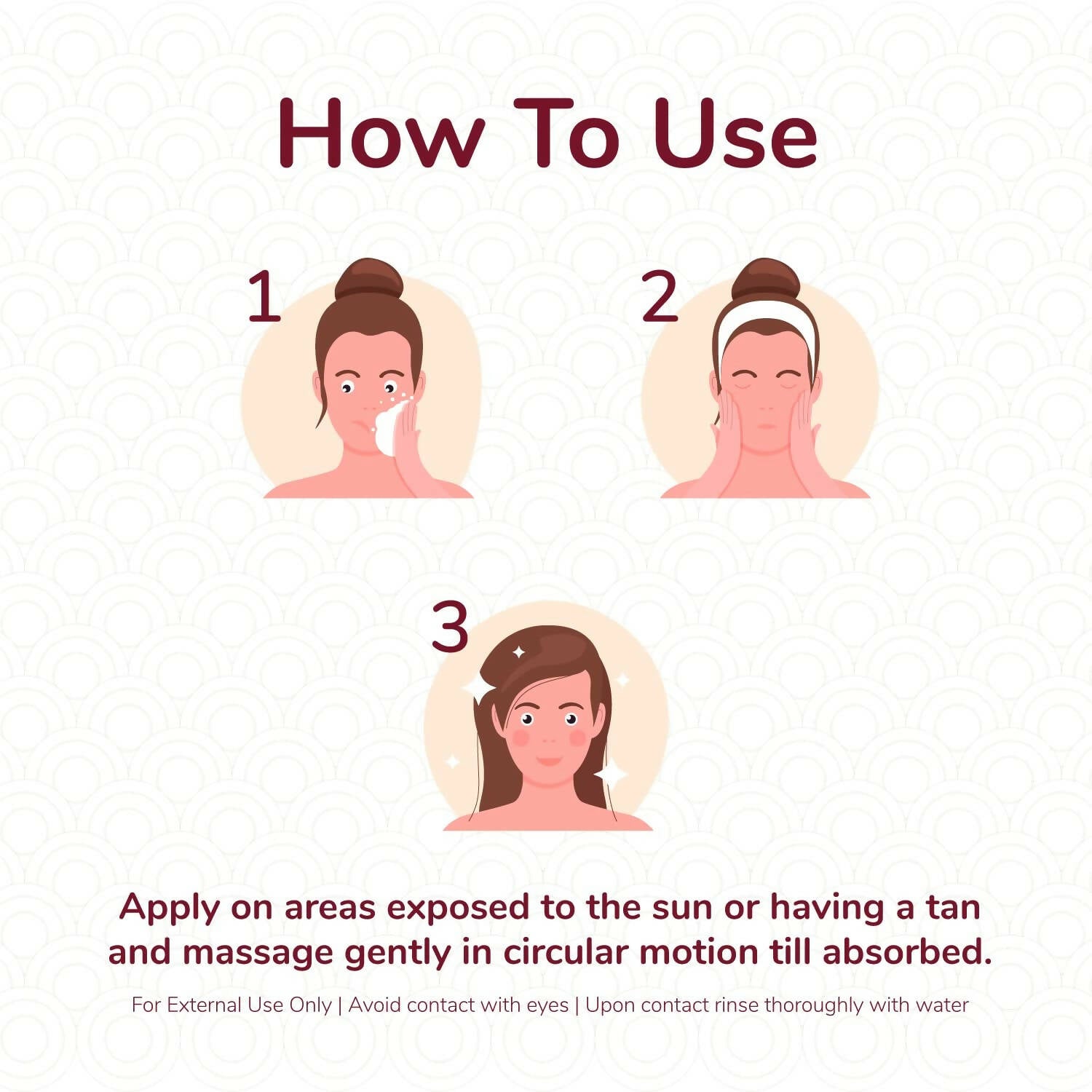 - Step1: Apply to sun-exposed or tanned areas and massage gently in a circular motion until fully absorbed.