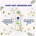 - Nivea Naturally Good Orange Blossom & Oil Shower Gel is Beneficial for Nature, Exceptional for Skin. It offers a "naturally moisturized skin sensation thanks to the 98% naturally derived composition. The bottle is crafted from 97% recycled PET plastic. It features a 99% biodegradable & vegan-friendly formula. It cleanses gently while ensuring prolonged skin comfort.