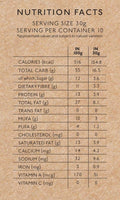 Oats flakes (45%), Organic Honey (11%), Organic Almonds (9%), Organic raisins (9%), Coconut flakes (9%), Coconut Oil (5%), Organic Brown sugar (2%), Cinnamon, Vanilla & salt