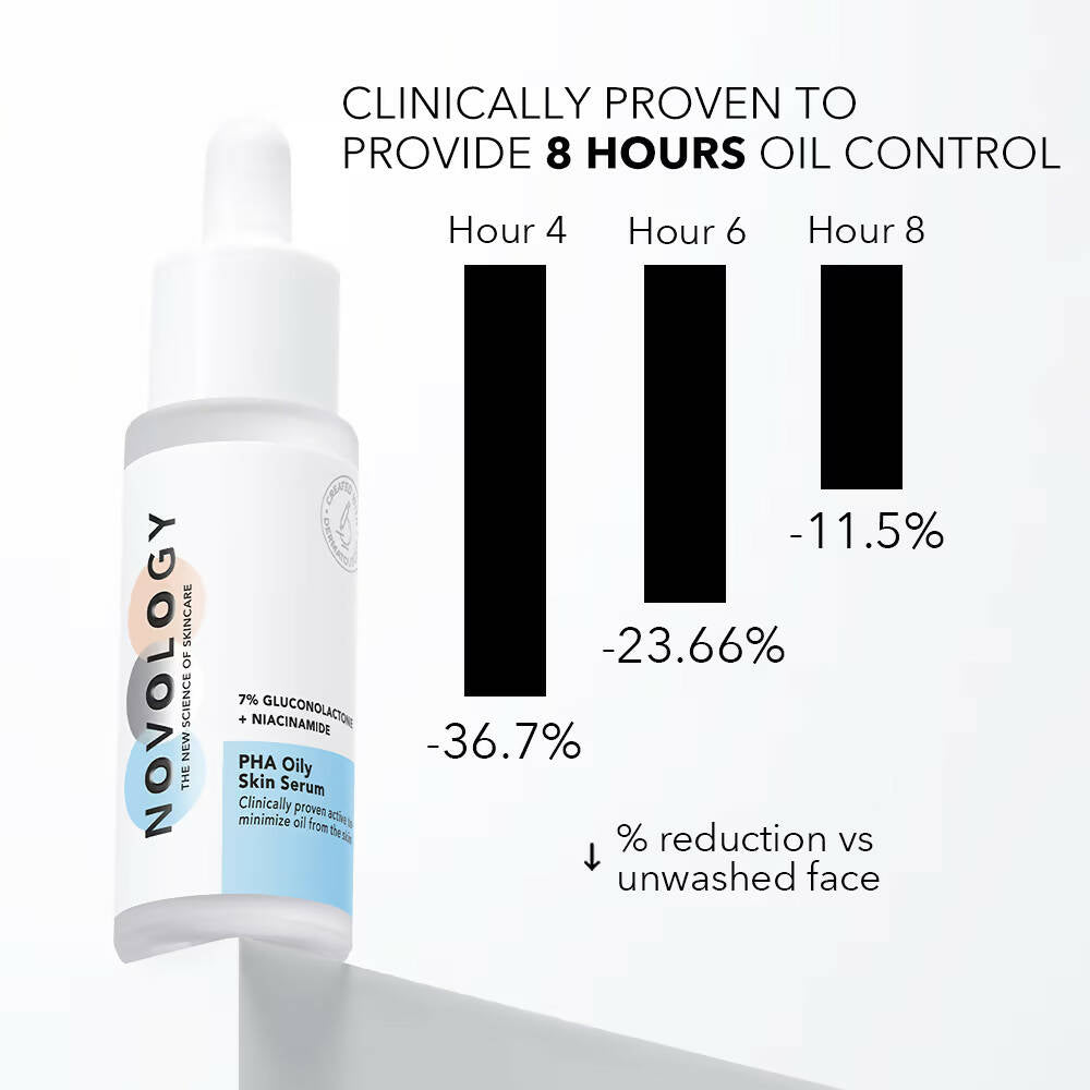 - This PHA oil reduction serum, crafted with highly effective active components such as Gluconolactone and Niacinamide, is scientifically validated to offer oil control for up to 8 hours.