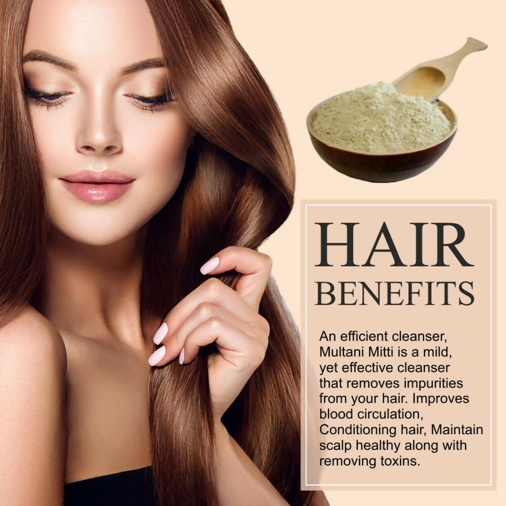 - For Skin: Thanks to the oil-absorbing qualities of multani mitti, it is highly effective in managing acne while accelerating the skin's healing process. When used as an exfoliant, multani mitti can effectively remove dead skin cells along with blackheads and whiteheads, imparting a natural and radiant glow to your complexion. For Hair: This versatile cleanser is gentle yet powerful, eliminating impurities from your hair. It boosts blood circulation, conditions hair, and keeps your scalp healthy by removing toxins. How to use: Blend with rose water to create a thick paste, then apply to your face and hair as needed, rinsing with lukewarm water once dry.