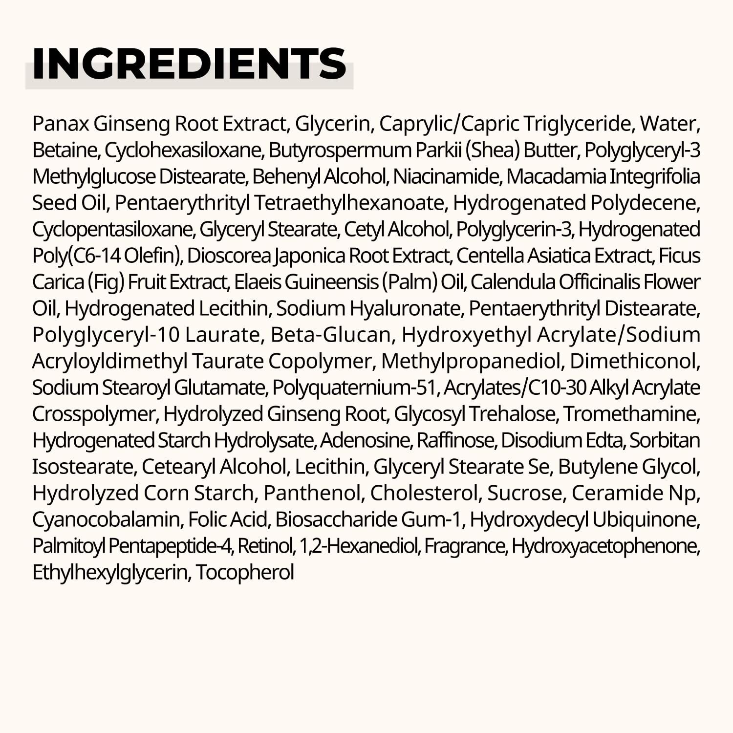 - A highly nourishing anti-aging cream that boosts elasticity with red ginseng root extract. Just one application of this cream ensures your skin stays hydrated throughout the day.