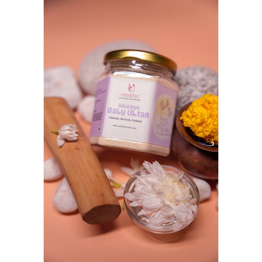 - The ubtan's deep cleansing effect efficiently removes impurities from your baby's skin.