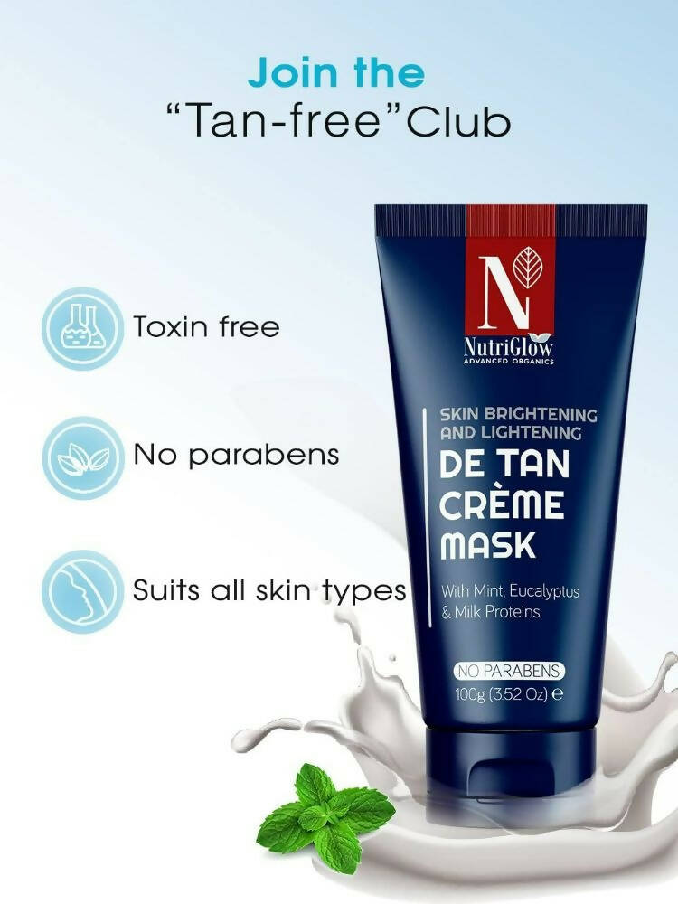 About the Product:- Deeply Removes Persistent Tan: Looking to eliminate a stubborn tan that just won't fade? Nutriglow De Tan Mask, infused with mint extract, effectively removes tan while soothing redness, itchiness, and irritated skin, and unclogs pores.