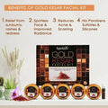 - This kit sustains skin equilibrium and rejuvenates impaired skin cells. Ingredients lacking the ability to enhance natural allure are inadequate. To help you stand out, we have incorporated premium Gold Dust particles and Kesar extracts that bestow an immediate radiance akin to that seen on the silver screen. Our Gold Kesar Kit, which accentuates the subtleties of your inherent beauty, is a fusion of natural elements that: