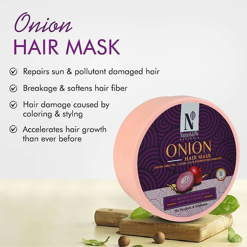 About the Product:- Some days, you embrace your hair with a carefree attitude, while on others, you struggle to manage those unruly locks. This typically occurs when your hair lacks essential nourishment, leading to dryness and frizz. Just as your body suffers from insufficient nutrients, your hair can lose its shine and luster too. Damage from bleaching, coloring, and other harsh treatments further deteriorates scalp and hair health. In such situations, what you truly need is an Onion Hair Mask. These hair masks are rich creams infused with nourishing ingredients like Onion Seed Oil, Redensyl, Jojoba Oil, and Hydrolyzed Keratin, which work diligently to protect your hair from daily damage and restore its natural shine and vitality. While hair masks may seem akin to daily conditioners, they actually contain more concentrated nutrients that penetrate deeper than the surface, offering comprehensive nourishment. During these times when salon visits are rare, you can still achieve a glamorous mane with a hair mask. With numerous options available, choosing organic and natural products is wise, as they are free from harmful toxins and gentle on your hair. With this in mind, NutriGlow has developed a Nature Certified product that revitalizes your hair with the power of nature. The NutriGlow Onion Hair Mask is the essential solution your hair has been longing for.