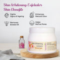 About the Product:- Facial Exfoliators have evolved into a crucial element of face care and beauty regimens. Are you on the hunt for the perfect Facial Exfoliator to treat your skin with the care it deserves? Look no further! In the realm of skincare, there's a multitude of options available. However, it's essential to select products tailored to your skin type and verify that they are crafted from safe and natural ingredients! As the name implies, the Skin Brightening Exfoliator is enriched with ILLUMINATING and LIGHTENING properties that assist in gently removing the skin's surface layer, revealing a luminous appearance. Furthermore, it opens up skin pores to facilitate better penetration of active agents, effectively breaking down deeper stain molecules. Skincare products composed of the purest ingredients smoothly exfoliate the outermost skin layer, enabling moisturizers, vitamins, and age-defying elements to penetrate more profoundly and efficiently. Are you curious about what other benefits our Skin Brightening Exfoliator offers your skin? We invite you to sit back and explore further, as this potent product delivers numerous skin advantages. This exceptionally skin-friendly product indeed works wonders on your complexion, leaving it with a natural glow, hydration, and a rejuvenated feel. When dealing with a severe sun tan, your immediate thought is to nurture your skin with calming ingredients. Isn't that right? Not only does it help soothe sunburns, but it also effectively fades blemishes. Additionally, it excels in combating and eradicating blackheads, clearing impurities, and enhancing the skin's natural radiance and vibrancy.