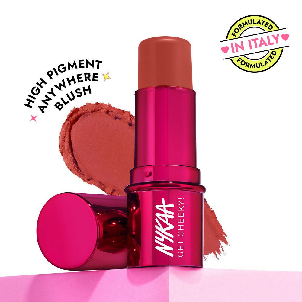 - The Nykaa Get Cheeky Blush Stick is a compact, richly pigmented blush offering a silky radiant finish. Crafted in Europe, this cream-to-powder formulation provides a smooth matte texture that applies like a cream and diffuses like a powder.