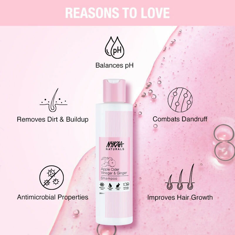 About the Product:- Nykaa's Apple Cider Vinegar & Ginger Shampoo offers a mild cleansing experience that effectively tackles dandruff and purifies the scalp. It naturally balances pH levels and is enriched with essential vitamins and minerals, promoting a healthy, residue-free scalp.