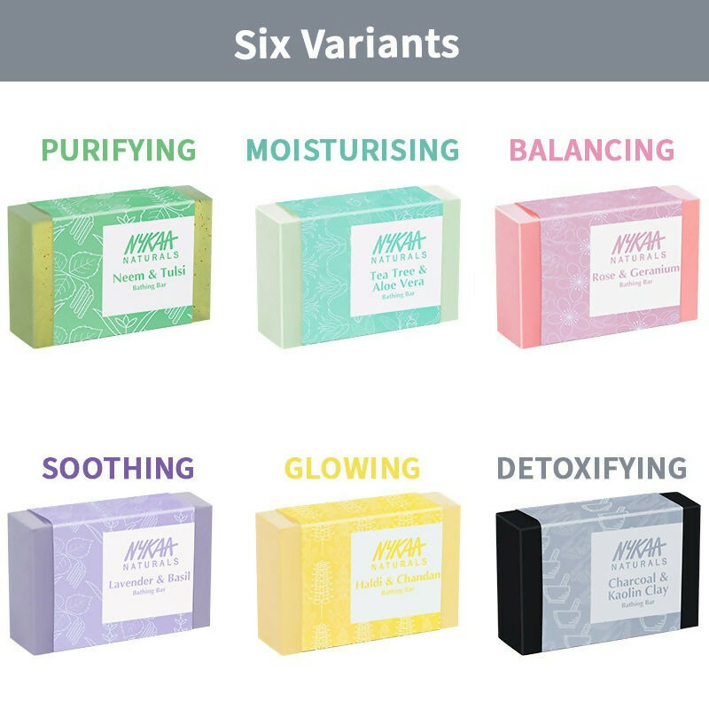 About the Product:- Nykaa's Bathing Bars utilize the natural potency of organic ingredients to provide a luxurious bathing experience. Available in six distinct variants, they offer more than just surface cleansing, revitalizing both body and mind. Each glycerin-enriched, hand-crafted soap generates a rich lather that leaves your skin feeling soft and smooth for days.