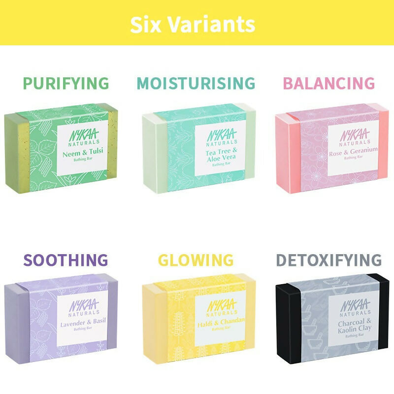 About the Product:- Nykaa's Bathing Bars utilize the natural potency of organic components to offer a luxurious bathing experience. Available in six distinct variations, they provide more than just surface cleansing, revitalizing both body and spirit. Each glycerin-enriched, hand-crafted soap produces a lush lather that keeps your skin feeling velvety and smooth for extended periods.