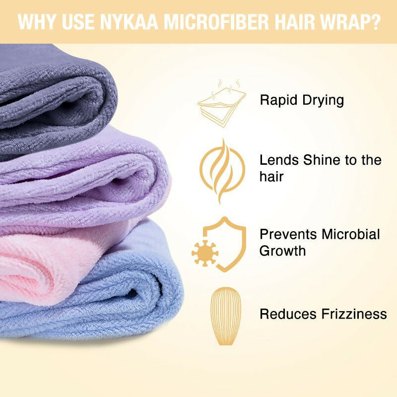 About the Product:- Embrace Nykaa's Microfiber Hair Wrap, your ultimate solution for achieving stunning frizz-free hair without the need for heat styling. It dries hair remarkably faster than a typical towel and pampers each strand with gentle care. The microfiber material feels incredibly soft against your hair cuticles, helping to prevent split ends and breakage. Its snug design ensures no more dripping water from damp hair onto your attire. Bid farewell to post-shower blow-dry routines and let this hair wrap weave its magic.
