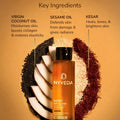 - Unleash your skin's ultimate radiance while profoundly rejuvenating it. Enriched with kesar threads, this pre-bath Ayurvedic oil penetrates at a cellular level to renew skin, enhance elasticity, render it soft and supple, and visibly endow it with a youthful glow. Apply this oil and allow its classic woody aroma to uplift your mood and invigorate your senses as it activates.