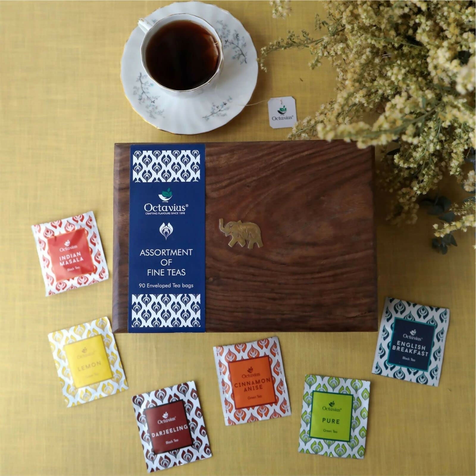 Octavius Dark Wood Caddy Wooden Gift Box - 90 Tea Bags