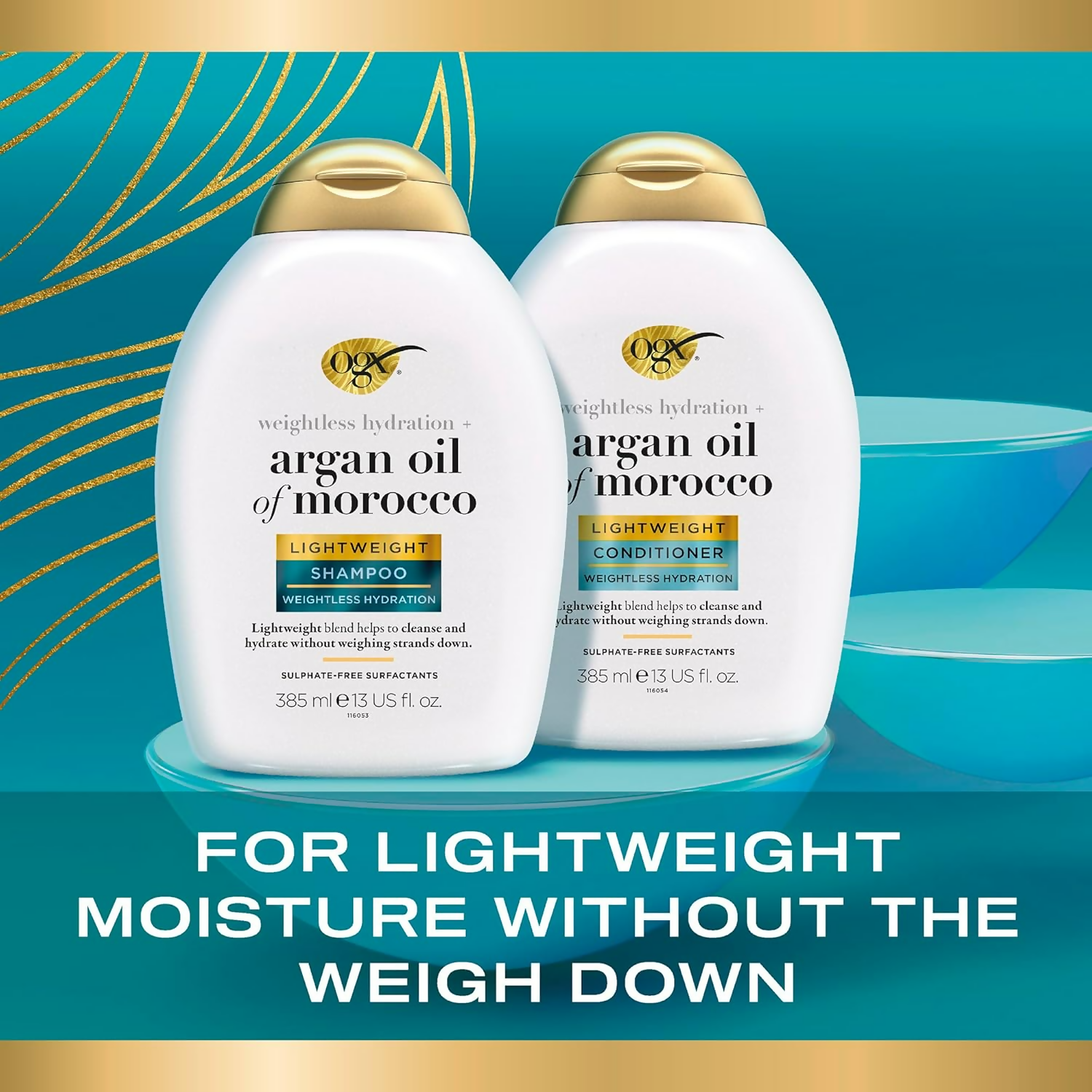 About the Product:- Experience the OGX Argan Oil of Morocco Lightweight Conditioner, which delivers crucial hydration while remaining feather-light on your hair due to its non-burdensome formula. This hydrating conditioner enriches thin, fine, and oily hair, imparting a natural luster and ensuring your hair remains silky, soft, and smooth. Moreover, enriched with argan oil and vitamin B5, this conditioner provides vital moisture, enhances hair structure, and eases detangling. Additionally, it maintains a balanced pH level and is free from sulfate-containing surfactants.