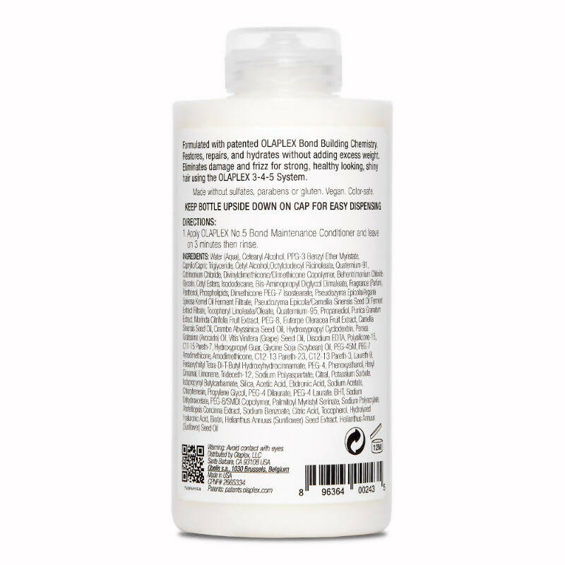 - Following the use of OLAPLEX No. 4 Bond Maintenance Shampoo, apply a generous amount of OLAPLEX No. 5 Bond Maintenance Conditioner from roots to ends.