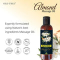 - Old Tree Almond massage oil is entirely natural, offering the ideal solution for nourishing, revitalizing, and enhancing your skin's natural radiance. This massage oil from Old Tree ensures your hands glide effortlessly, leaving your skin feeling soft, smooth, and rejuvenated. Whether you encounter back pain, leg discomfort, knee aches from prolonged work hours, or muscle soreness from rigorous gym sessions, our Old Tree massage oil is an excellent choice.