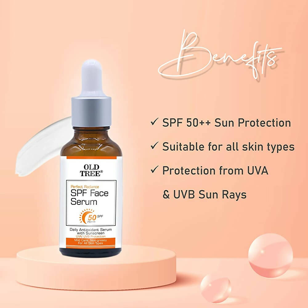 - Experience the Old Tree SPF face serum for enhanced sun protection and enjoy radiant skin glow & rejuvenation. This is the ideal sunscreen protection serum for oily skin. Achieve enduring brightness, even under the sun, with the Old Tree Bright Complete Vitamin C & SPF 50/PA+++ Serum Cream. Featuring SPF 50 and PA+++, this face cream shields your skin from the harm inflicted by intense sun rays, preventing skin tanning, spots, and sunburns. Enriched with yuzu lemon and 3X* vitamin C, this cream ensures spotless and luminous skin within just a week. Its ultra-light formula penetrates swiftly into the skin without any heavy or greasy sensation.