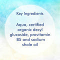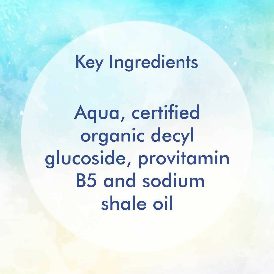 Aqua, certified organic decyl glucoside, provitamin B5, and sodium shale oilHow to Use: